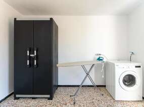 Im Außenbereich haben Sie eine Terrasse im Obergeschoss mit Liegestühlen und einer Außendusche, ideal zum Sonnenbaden oder Genießen der Aussicht auf Roque Bentayga und die Berge.